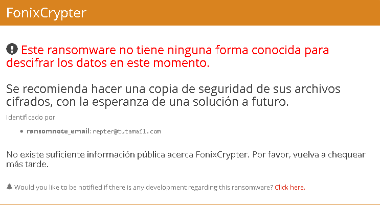 Puedes comprobar si el ransomware que te atacó tiene actualmente posibilidad de ser descifrado aquí: https://id-ransomware.malwarehunterteam.com/index.php?lang=es_ES