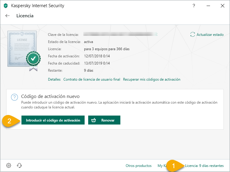 Buenos dias quisiera saber en que momento debo activar los codigos del activacion del anti virus kaspersky internet security antes de vencer la licencia o el dia que caduca?