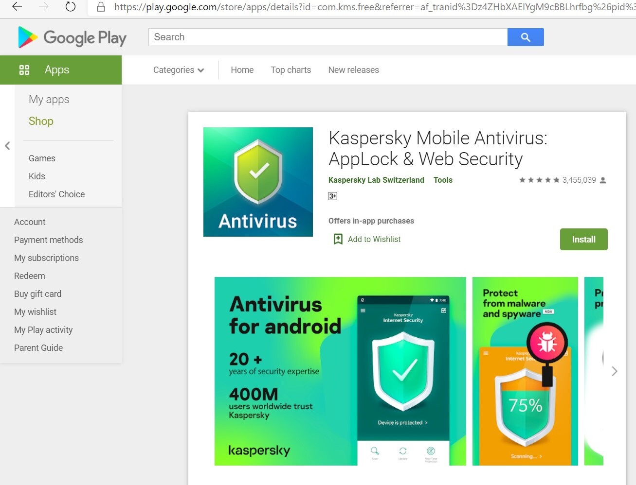 Google Play Store link = https://app.appsflyer.com/com.kaspersky.secure.connection?pid=klsite&c=nogeo_hp