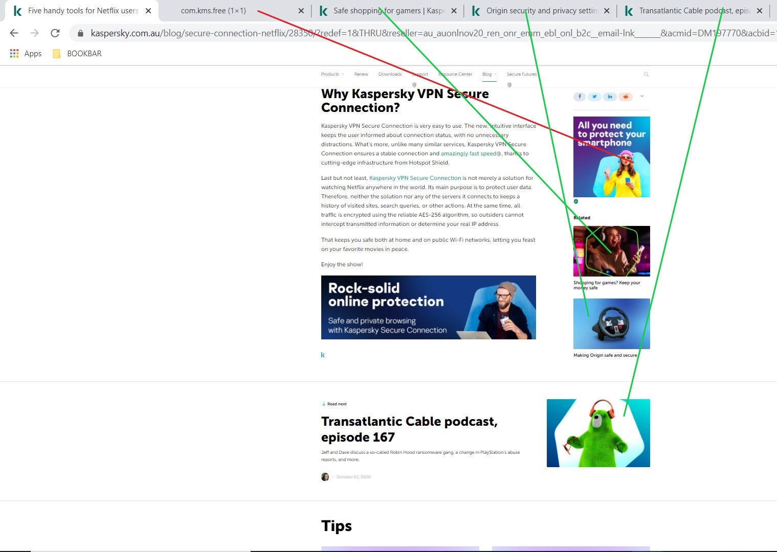 Kaspersky’s own page, 2 links resolve to Black (1x1), 1 link resolves correctly: