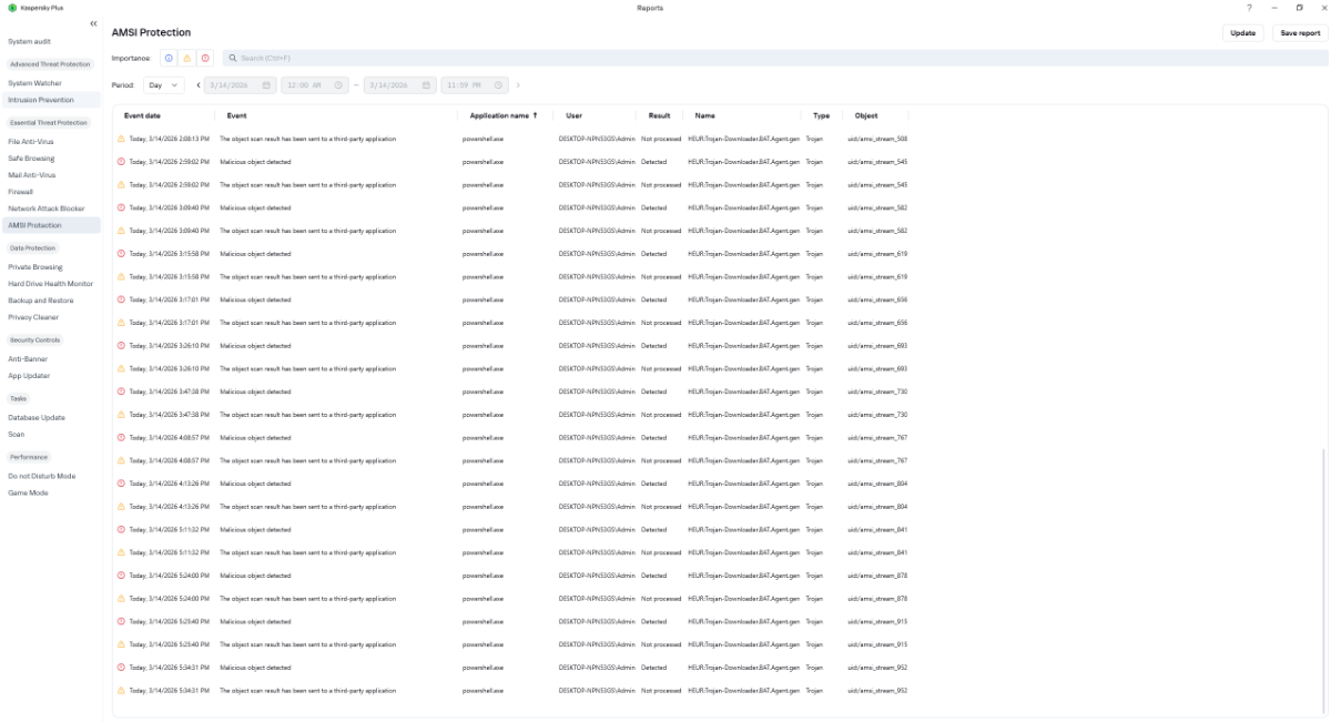 Can't remove powershell.exe marked as Trojan, HEUR:Trojan-Downloader.BAT.Agent.gen