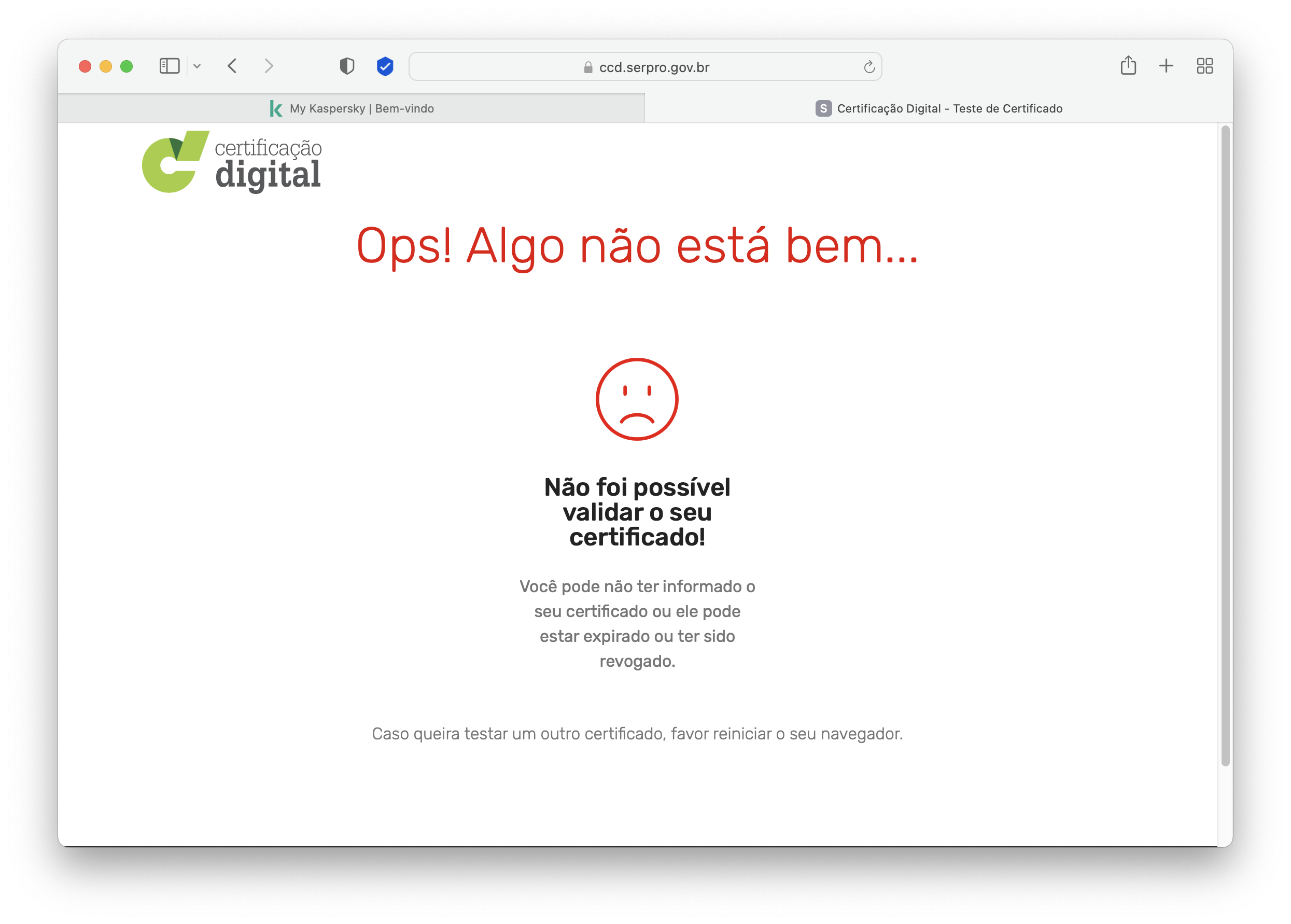 Certificado digital NeoID do Serpro não passa no teste depois de instalado no MacOS