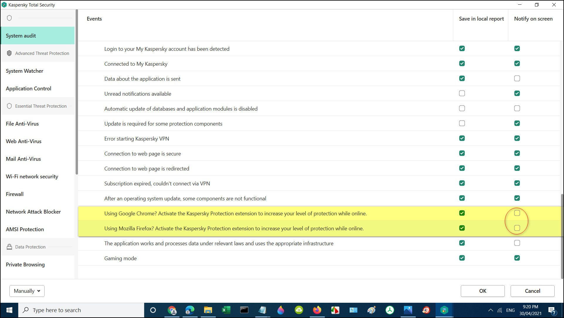 Chrome - Activate Kaspersky Protection extension recommentations