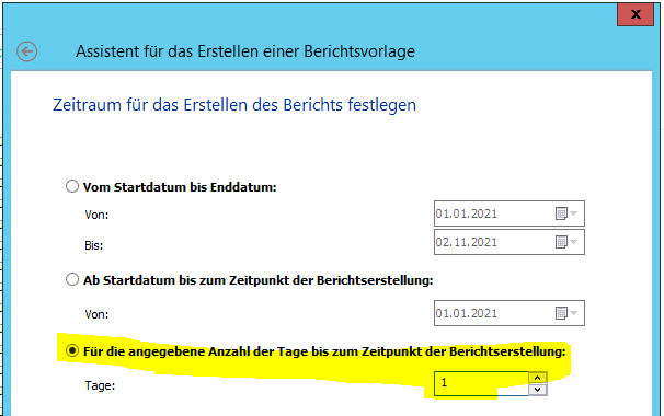 ich erstelle mir hier in der Regel eigene Berichte und wähle dann den Auswertungszeitraum anders.