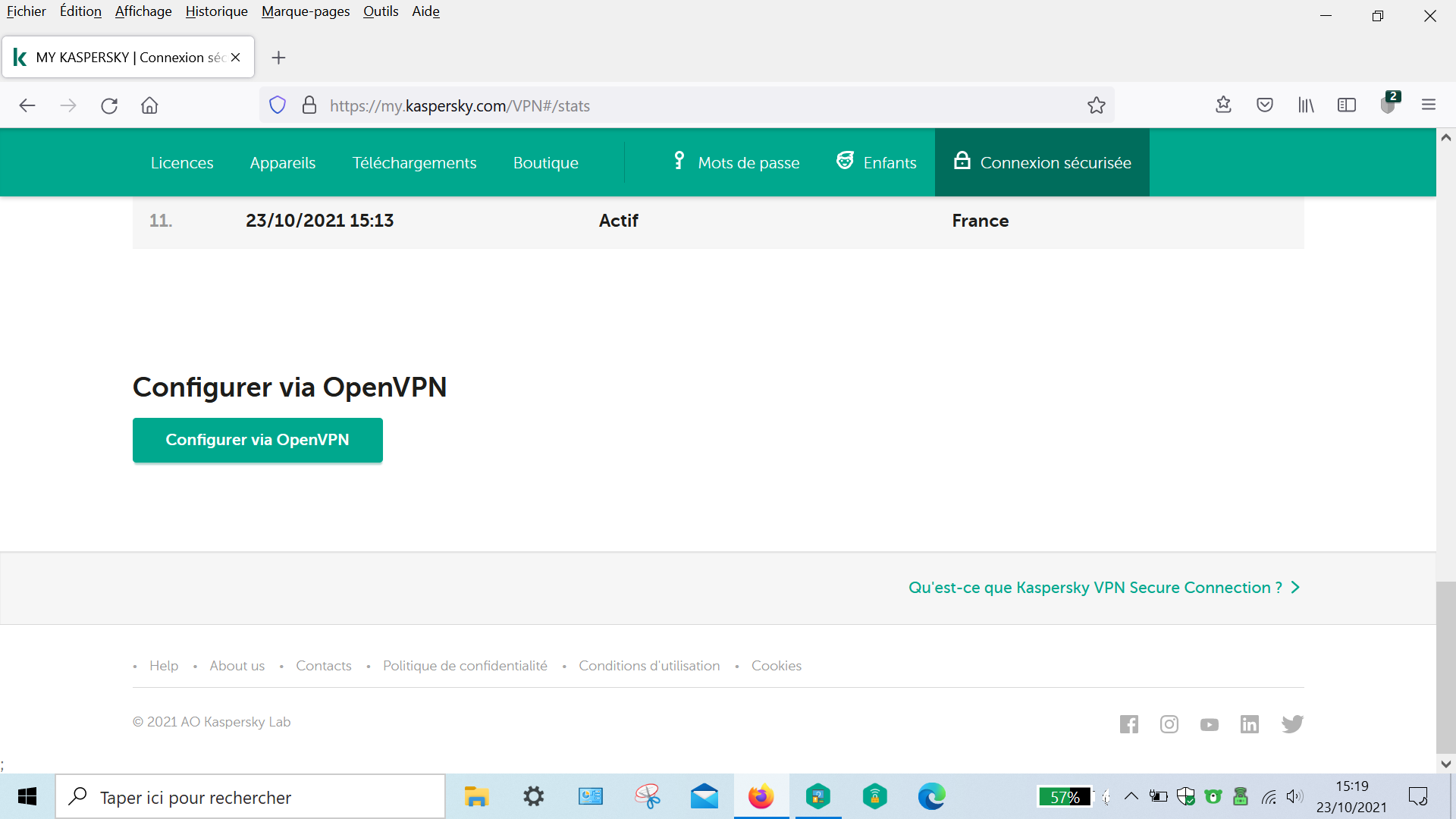 Je dispose déjà du VPN Kaspersky et j’aimerais savoir pourquoi mon espace my Kaspersky
