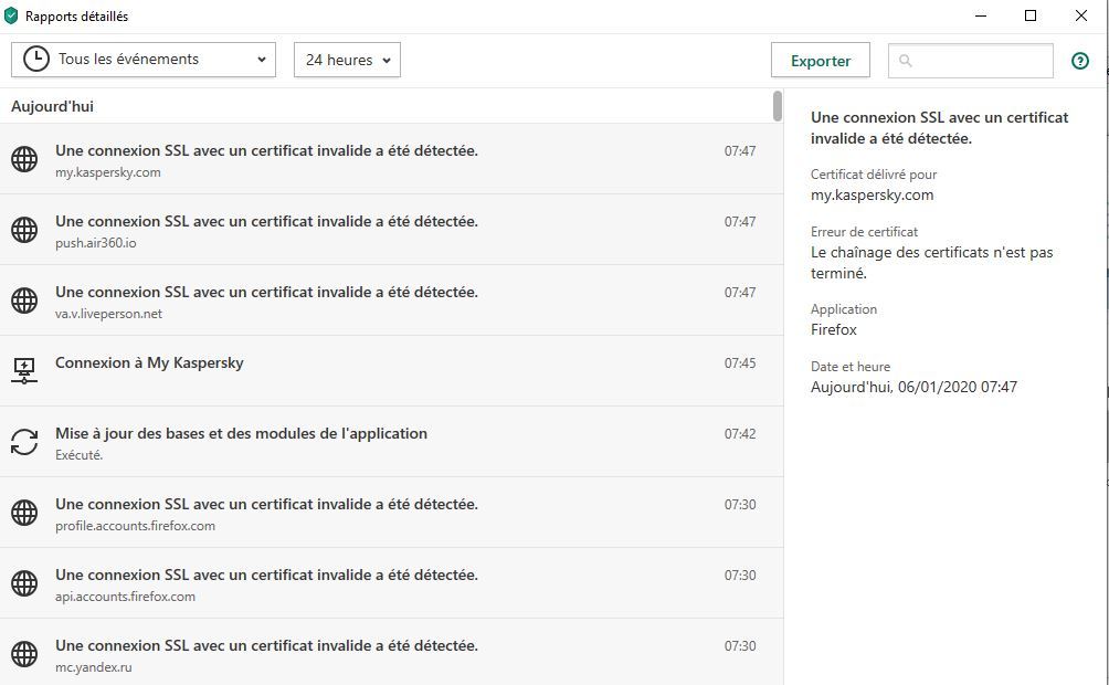 Connexion non protégée Le chaînage des certificats n'est pas terminé