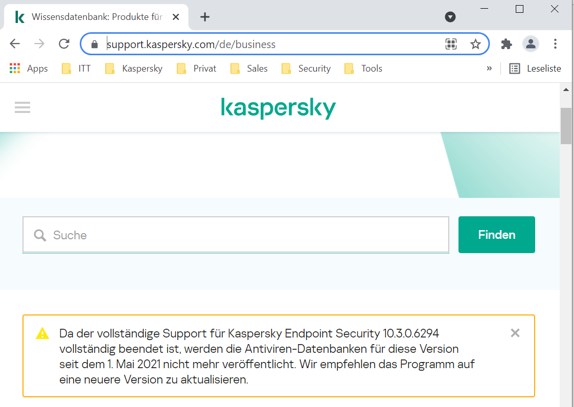 Datenbanken sind veraltet | Keine Updates vorhanden KES 10.3.0.6294