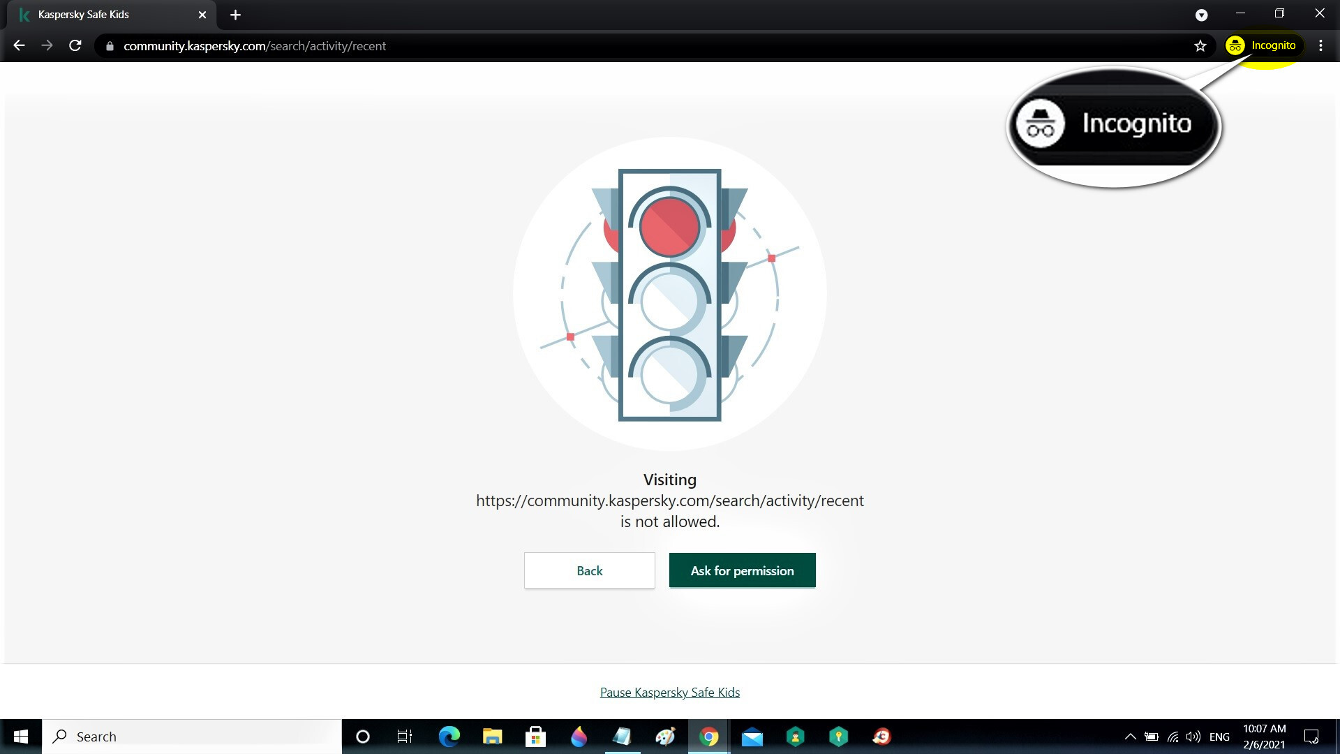 Does Kaspersky safe kids block websites in incognito mode?