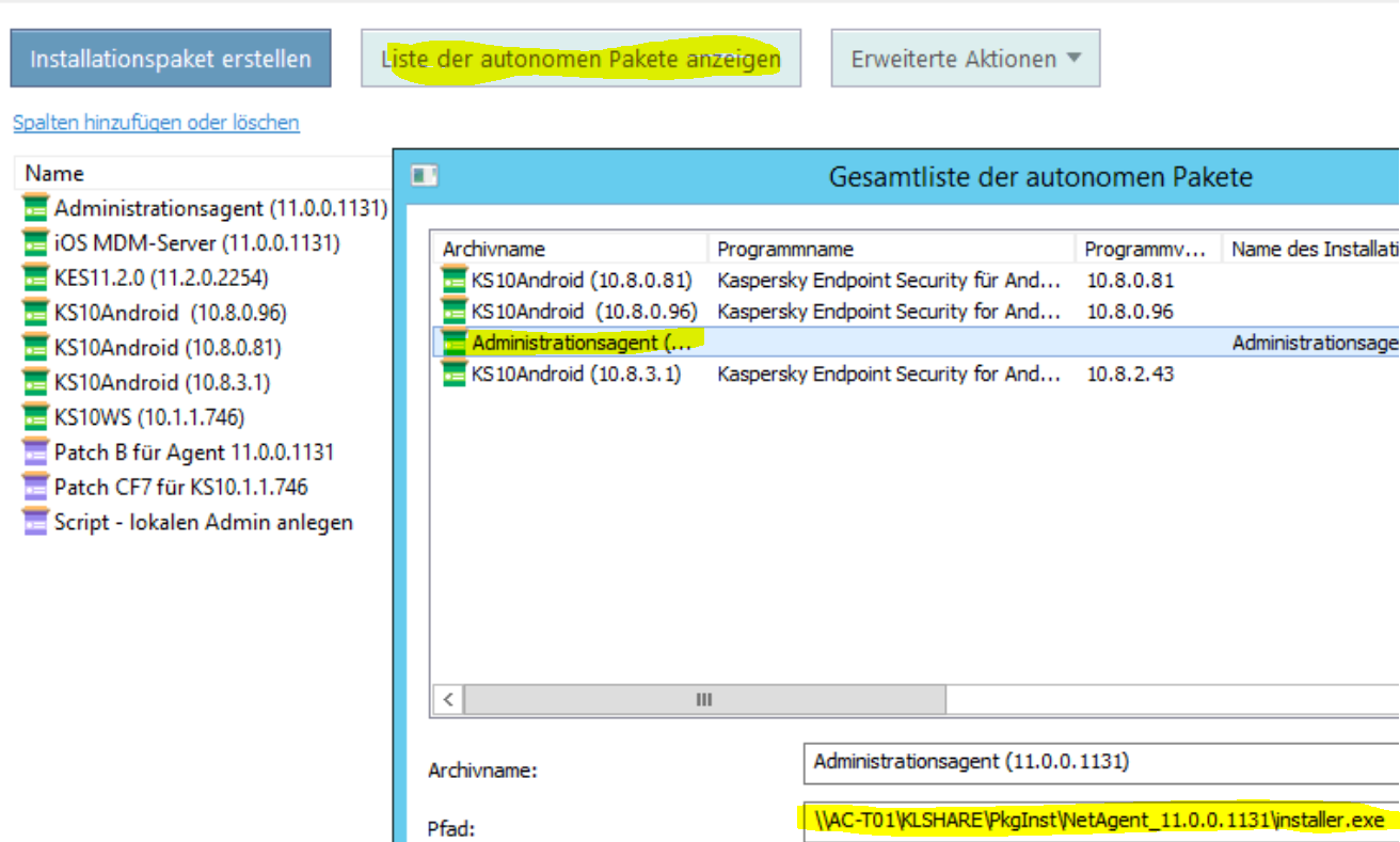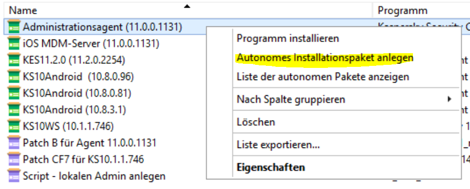 Der Netzwerkagent müsste als Installationspaket in deinem KSC vorhanden sein. In den Eigenschaften siehst du auch, wie du dieses Paket über das Netzwerk erreichen kannst.