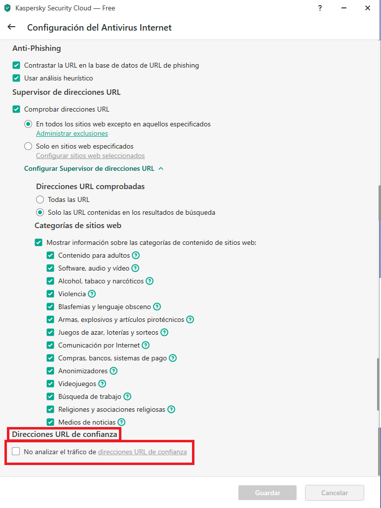 El plugin Kaspersky Protecction no aparece en los resultados de búsqueda de Google