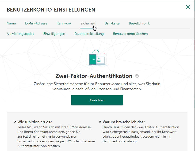 email ändern und 2FA hinzufügen?