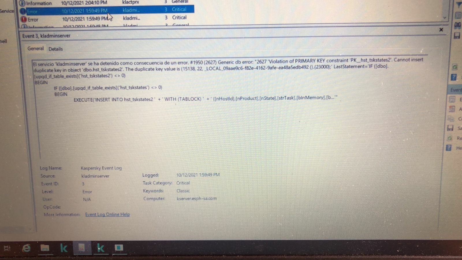 ERROR DE ACTUALIZACION DE KSC 13.0 A 13.1.0.8324
