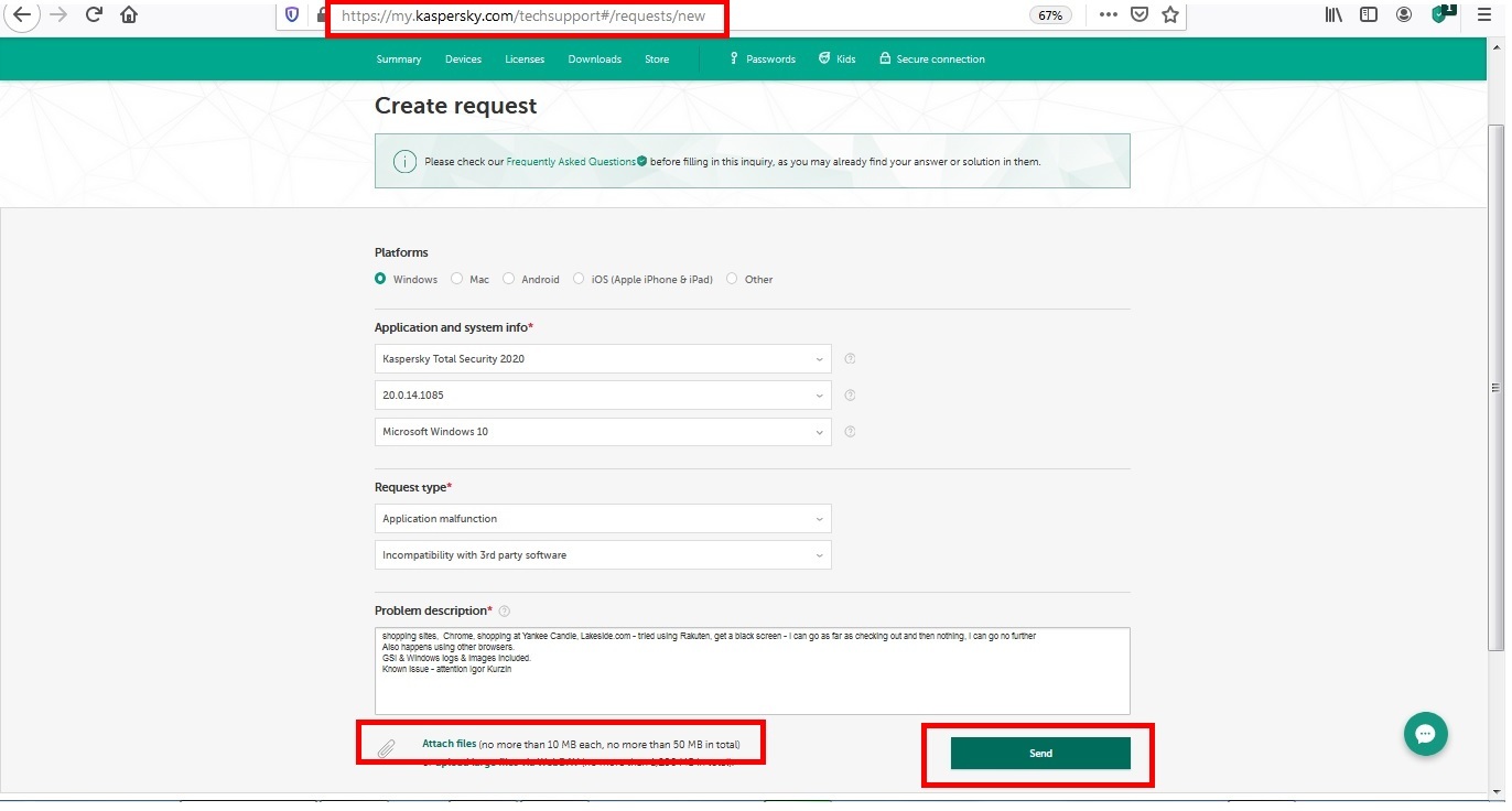 • If you call or chat, please let the Support person know Igor Kurzin, Kaspersky employee, is the reference person for this known issue.