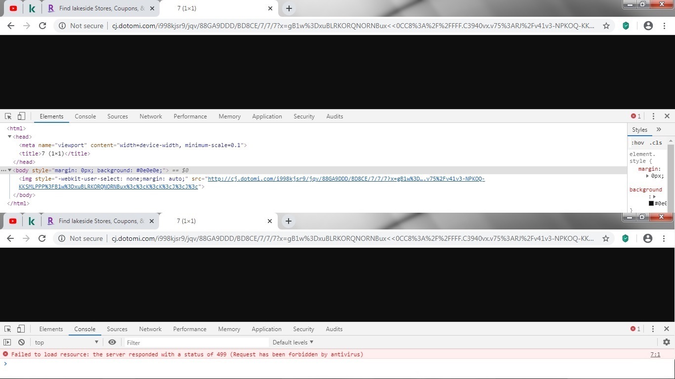 Black screen 7(1x1) = cj.dotomi - Failed to load resource: the server responded with a status of 499 (Request has been forbidden by antivirus)