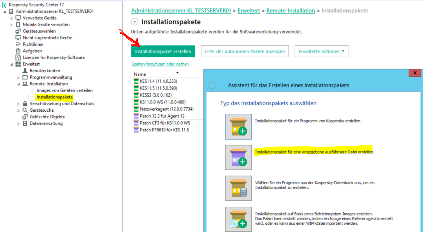 Für jeden Patch erstellst du im KSC ein Installationspaket. Dabei wählst du im Assistent den Punkt “Installationspaket für eine angegebene ausführbare Datei erstellen”