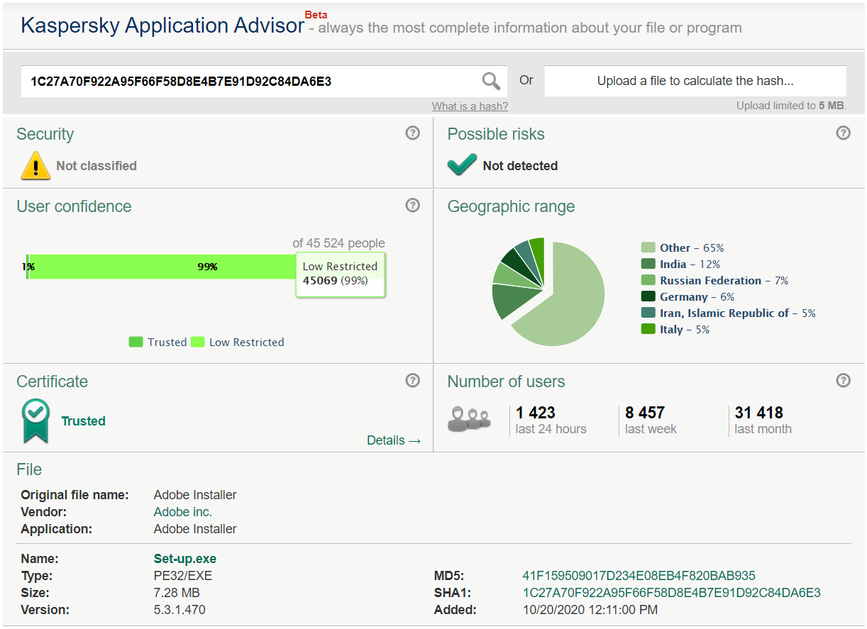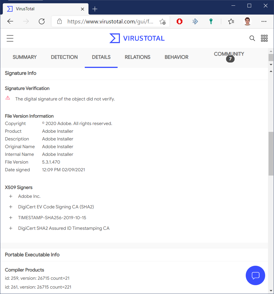 File Signature Verification discrepancy for Adobe installer.