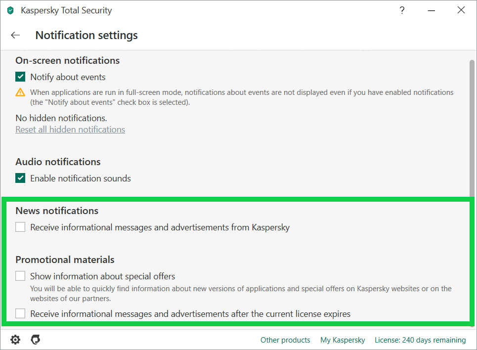 How can I get KIS to stop spamming me? ad for Kaspersky VPN or Kaspersky password manager [Merged]