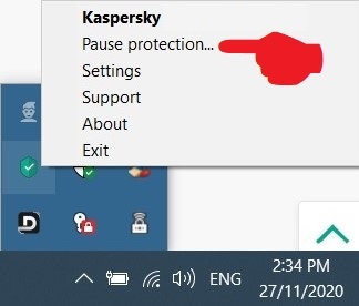 How to temporarily pause Kaspersky while updating Windows?
