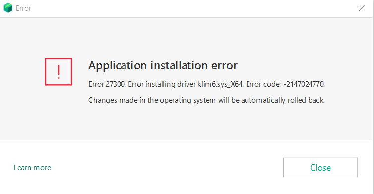 I cannot install KIS, cannot install ……….exe driver.