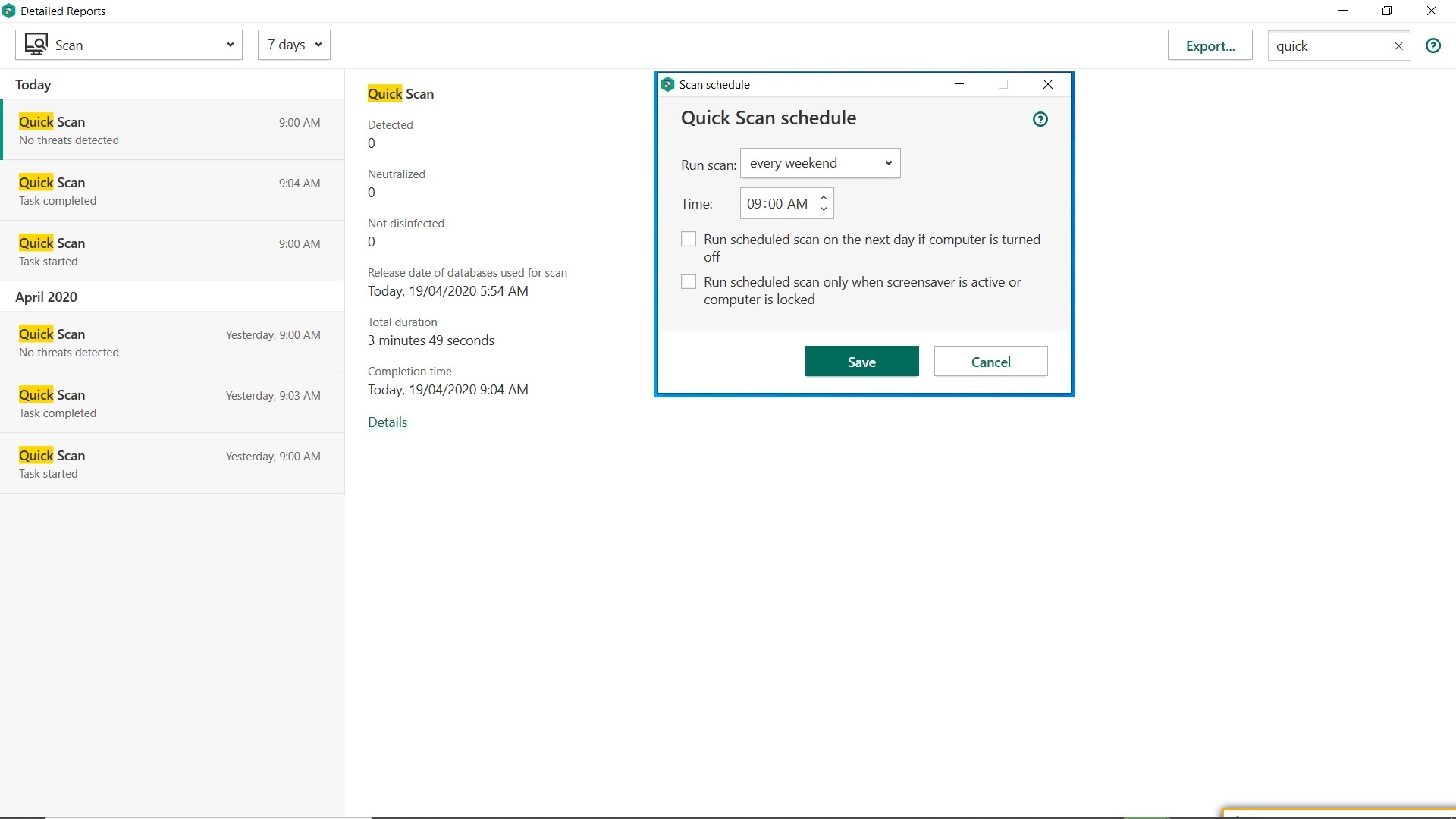In scan scheduling, what's a "weekday" and what's a "weekend?"