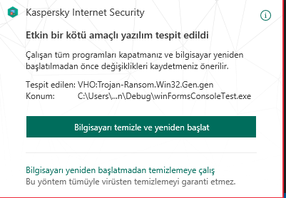 Kaspersky Doesnt Allow C# Attach Console, detected as Trojan.Ransom.