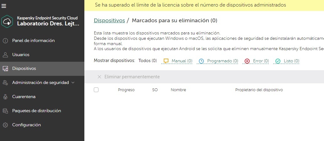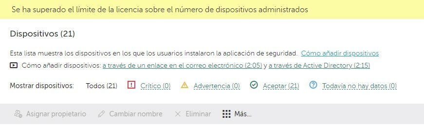 Kaspersky Endpoint Security Cloud, Se ha superado el límite de la licencia, parece un Bug