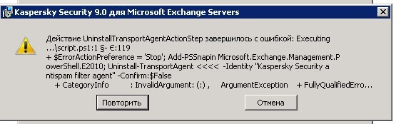 Kaspersky for ExchangeServer Installation error [MOVED]