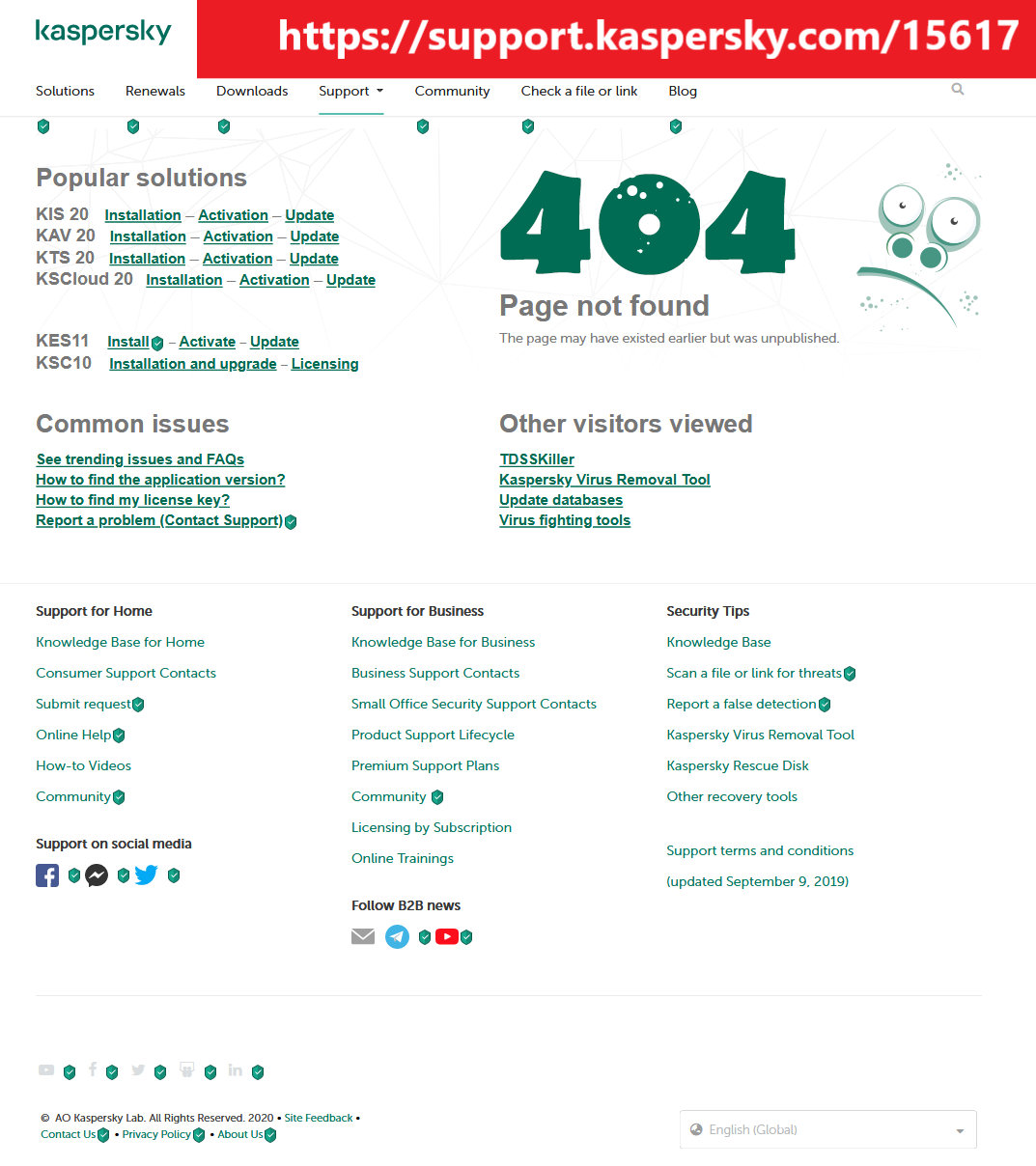 Kaspersky Internet Security for Mac, Important, link resolves to PNF, 404