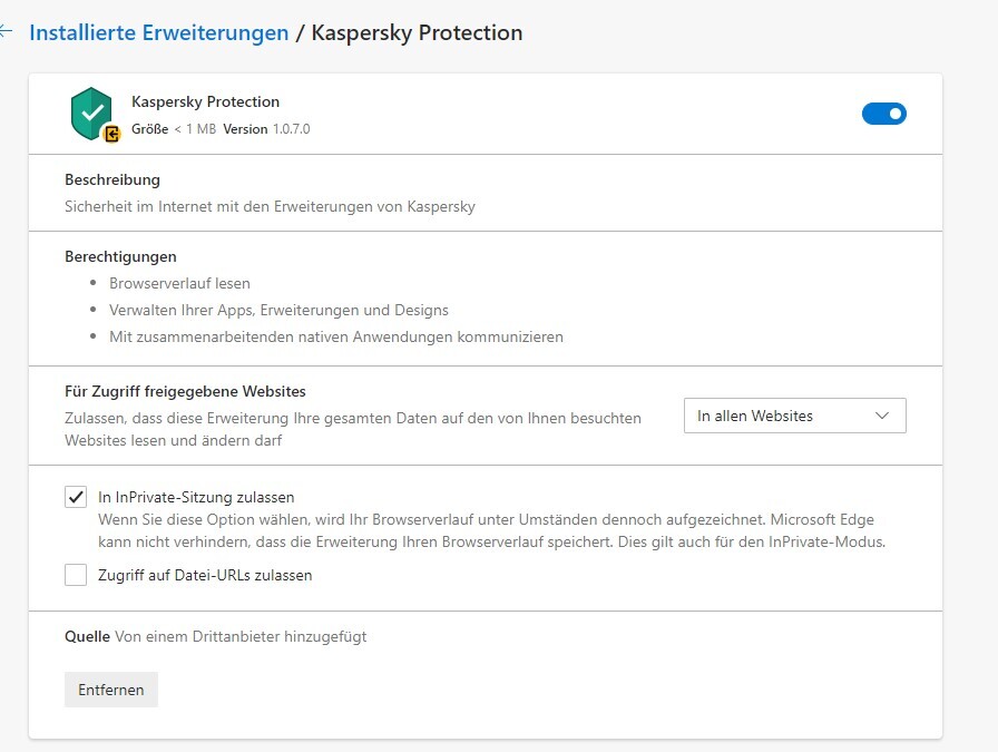 Kaspersky Protection im Edge (Chromium)
