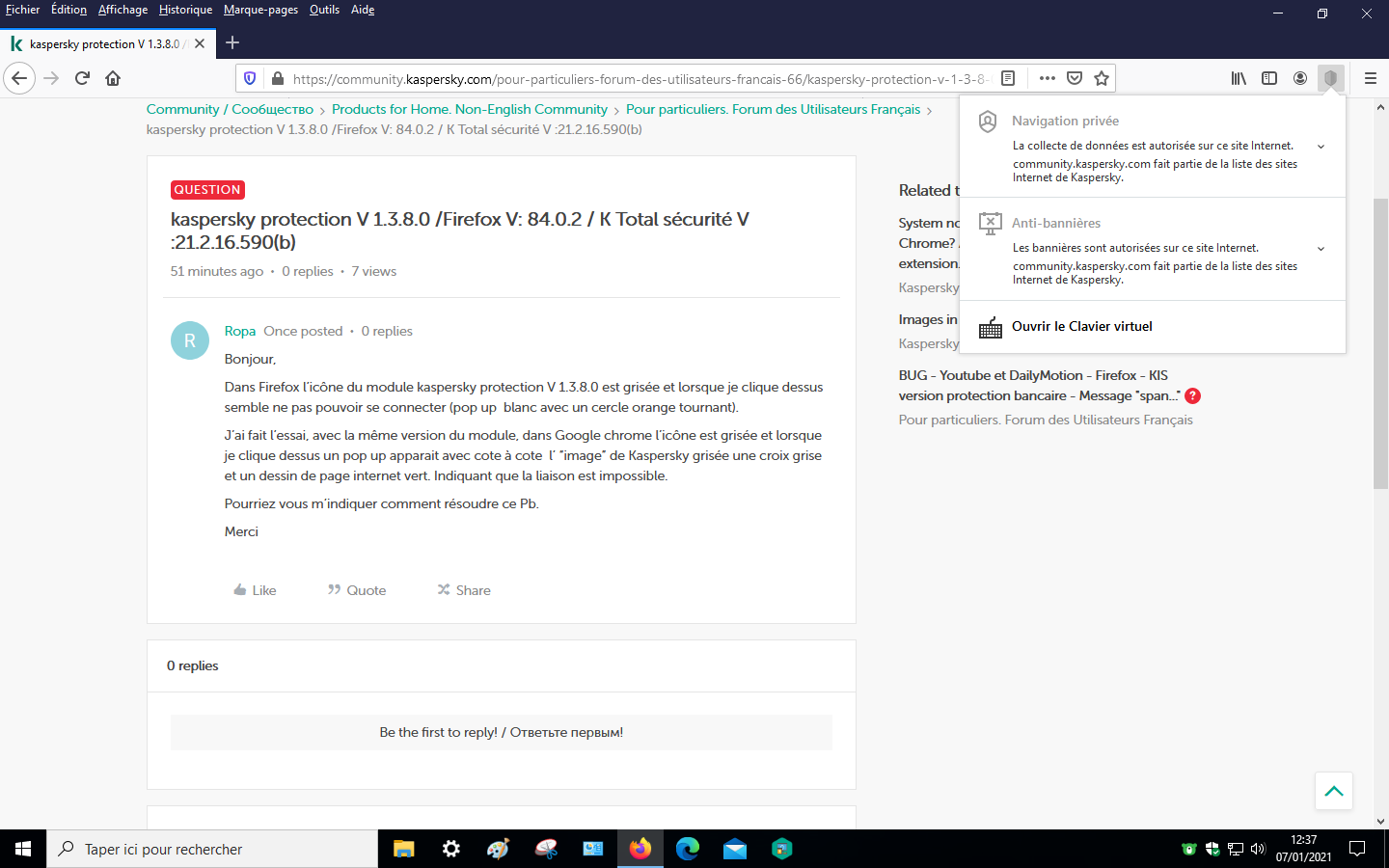 kaspersky protection V 1.3.8.0 /Firefox V: 84.0.2 / K Total sécurité V :21.2.16.590(b)