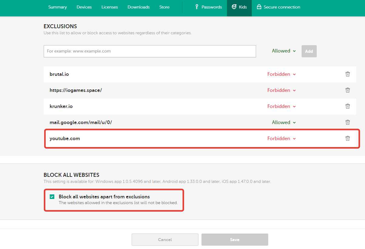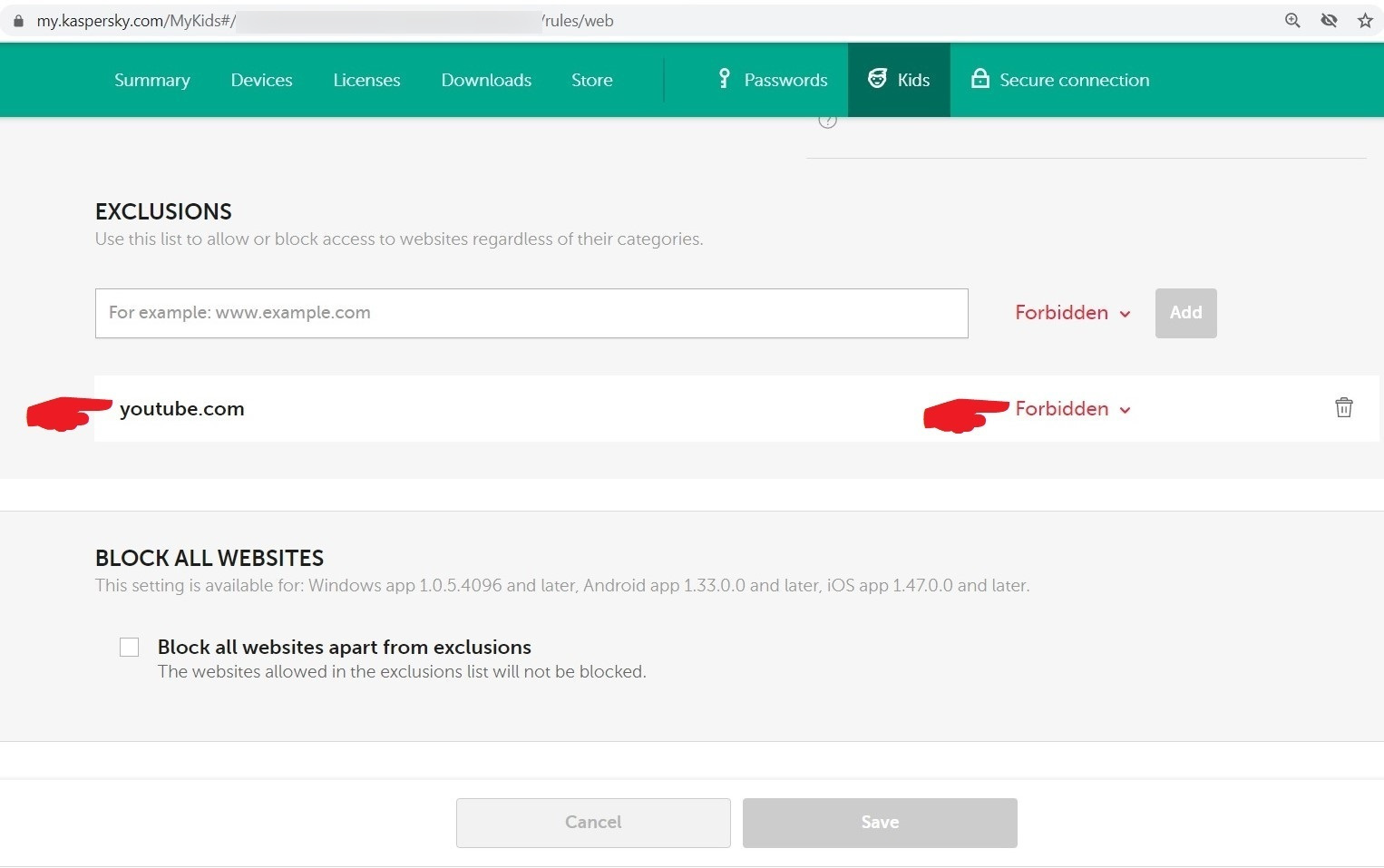 Kaspersky Safe kid not blocking YouTube on Chrome browser