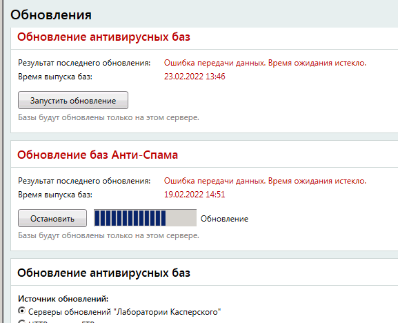 Kaspersky Security 9.0 для Microsoft Exchange Servers - перестали обновляться базы