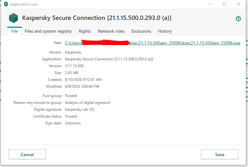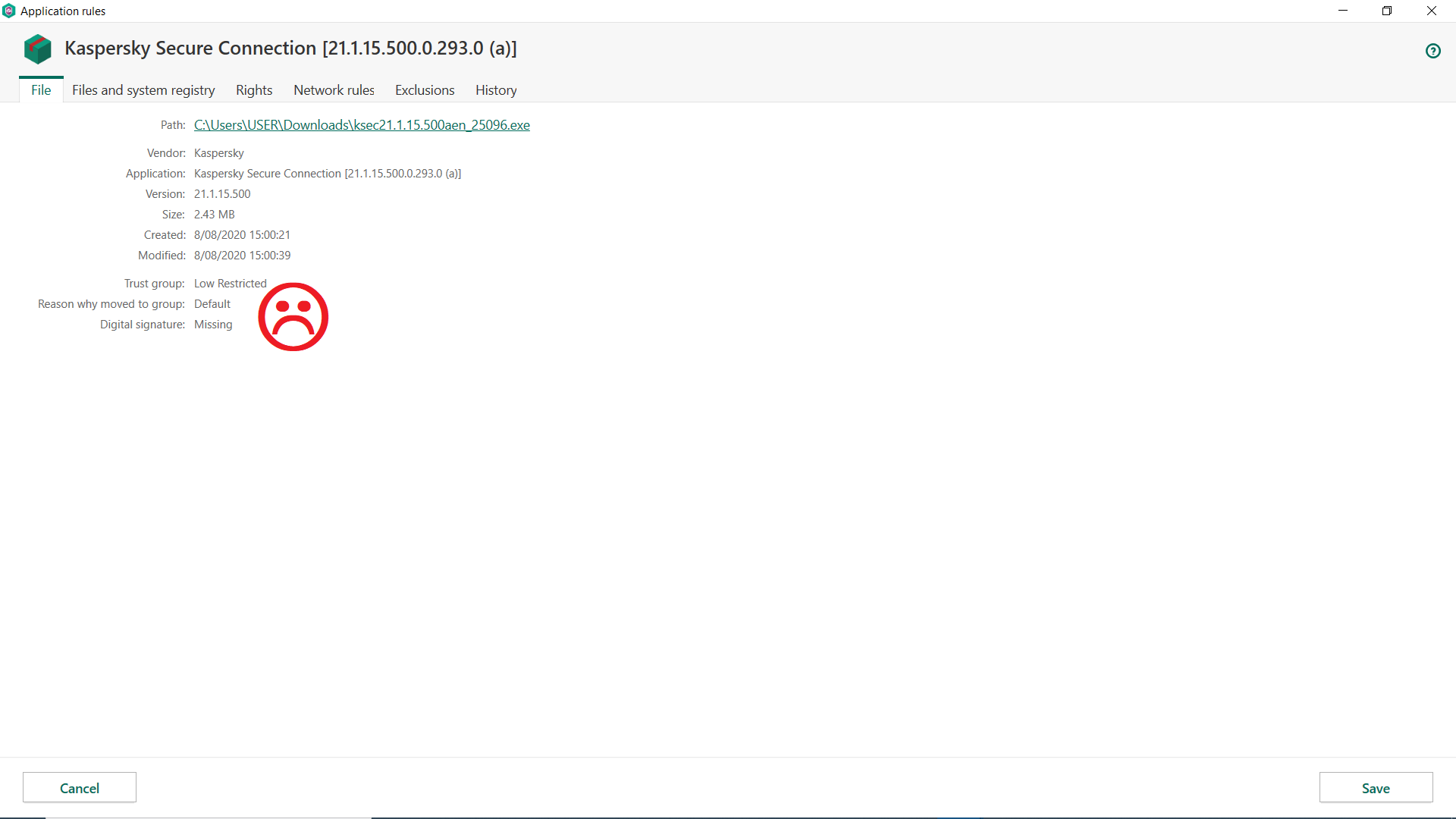 Kaspersky Security Cloud automatically assigning Kaspersky Secure Connection v21 to Low Restricted, blocking the install