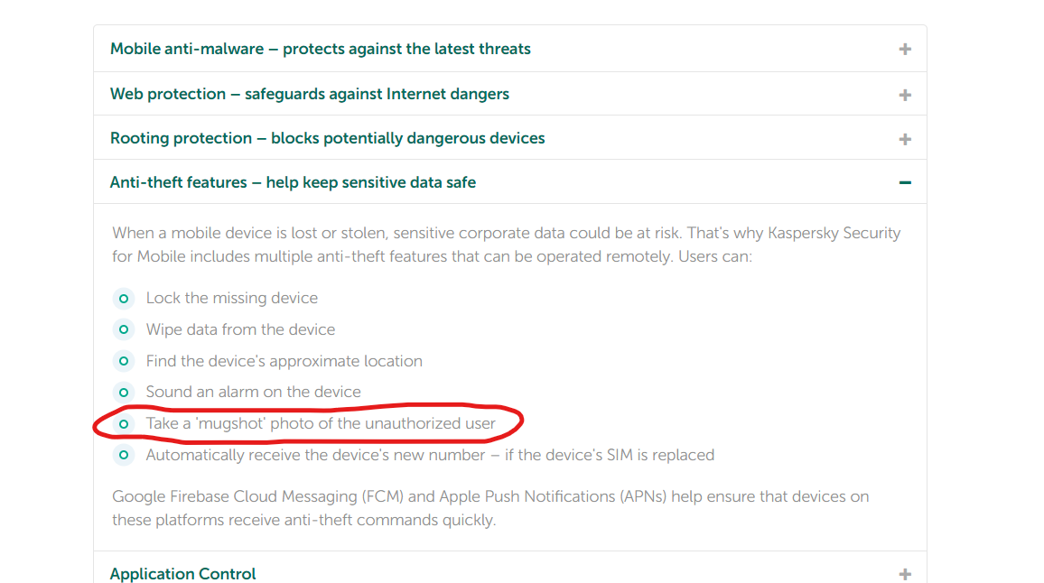 Kaspersky Security for Mobile Mug Shot - (Part of Kaspersky Endpoint Security Cloud)
