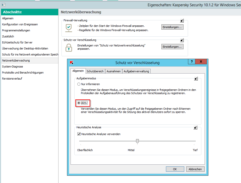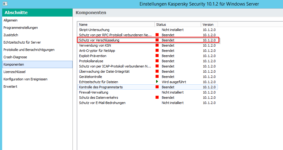 Kaspersky Server - Schutz vor Verschlüsselung nicht aktiv?