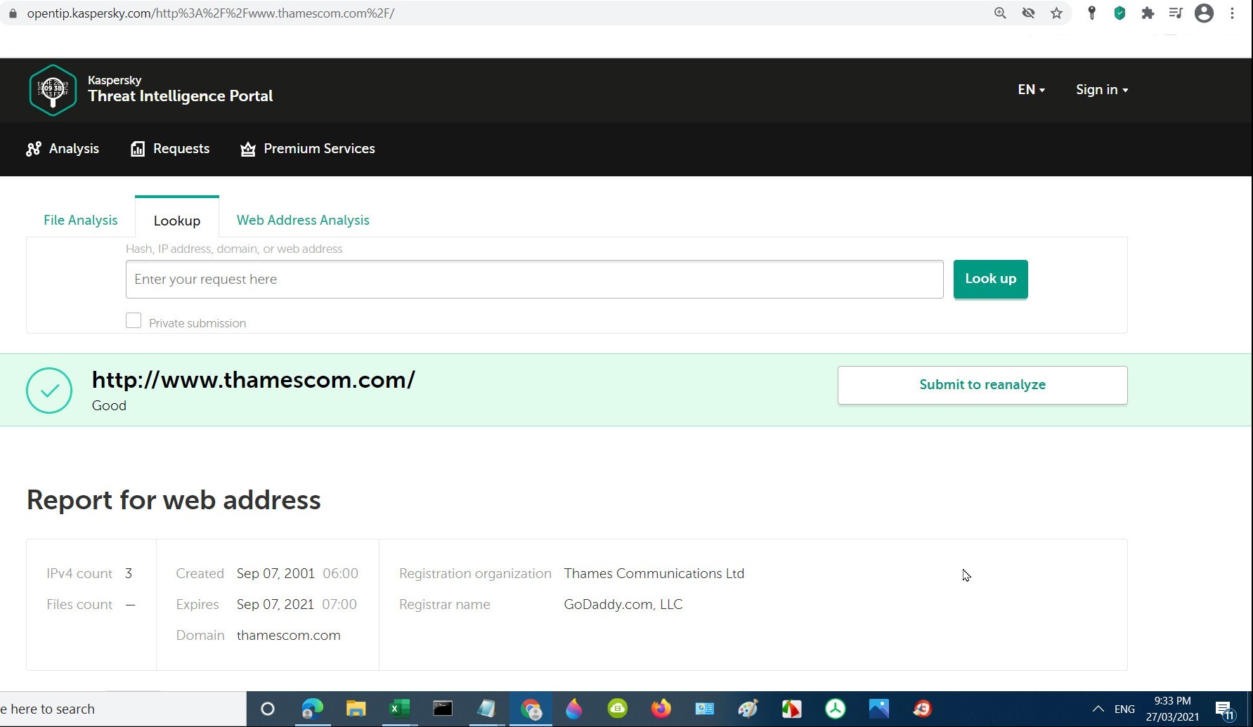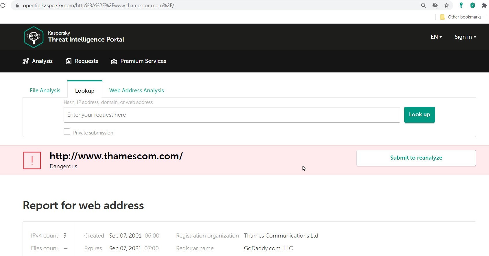 Kaspersky threat intelligence portal, our domain has not been taken off the threat list.