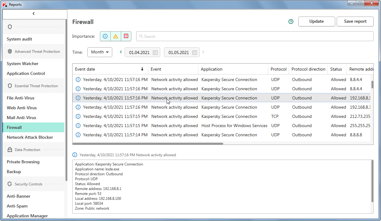 Kaspersky Total Security: how can I see traffic log file(s)?
