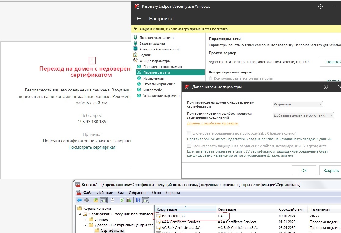 <...> А так, будем ждать когда в KES 11.2 снова завезут зачем то выпиленную кнопку “Принимая риск перейти на сайт”.<...>