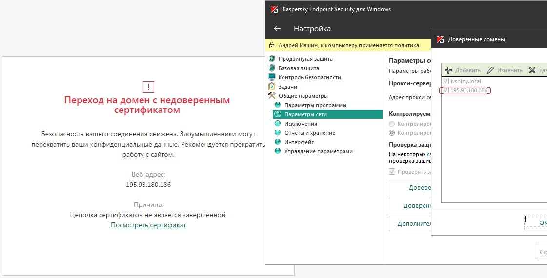 Мне только для одно браузера Chrome. Этот способ сработал и он сейчас наверное самый правильный. Так как не проседает общая безопасность. А то что путь к программе может поменяться…. ну да. Надо будет снова поправлять путь. А так, будем ждать когда в KES 11.2 снова завезут зачем то выпиленную кнопку “Принимая риск перейти на сайт”.