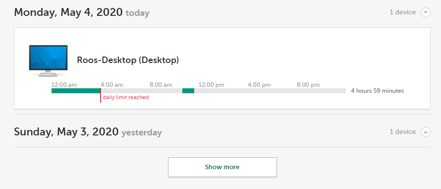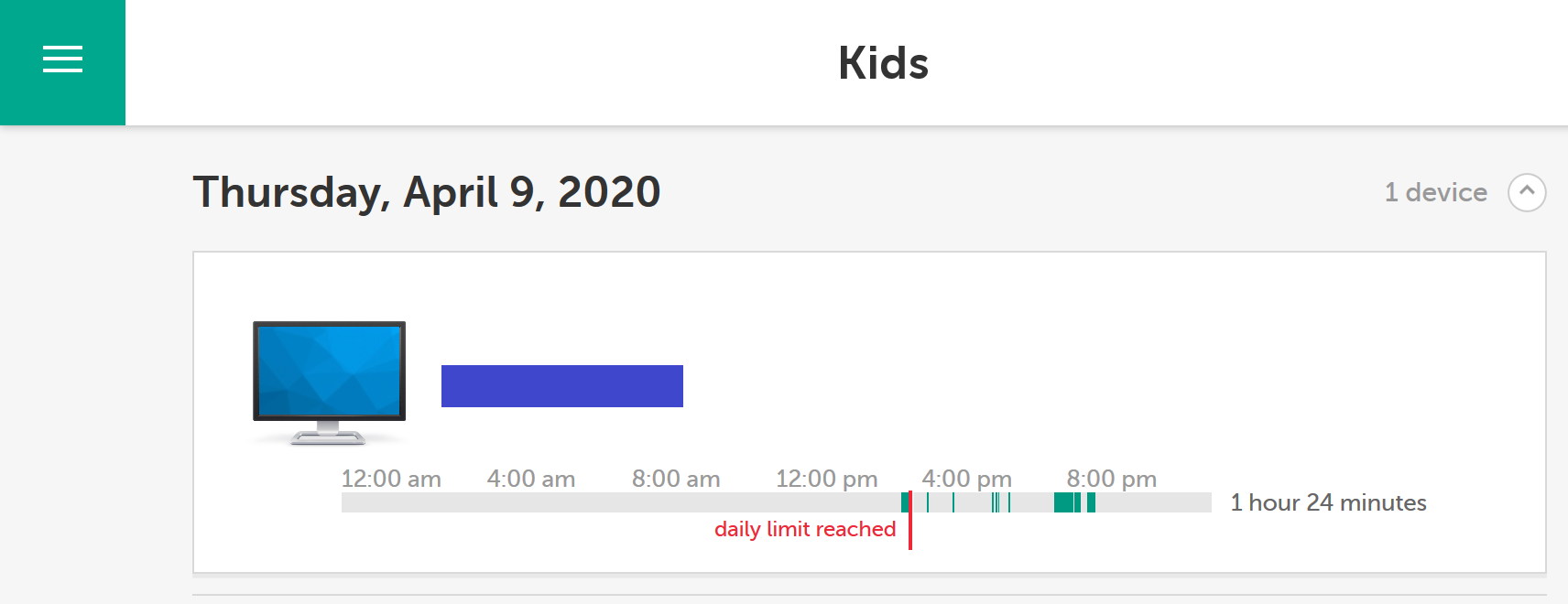 Kids device usage thinks computer is always in use