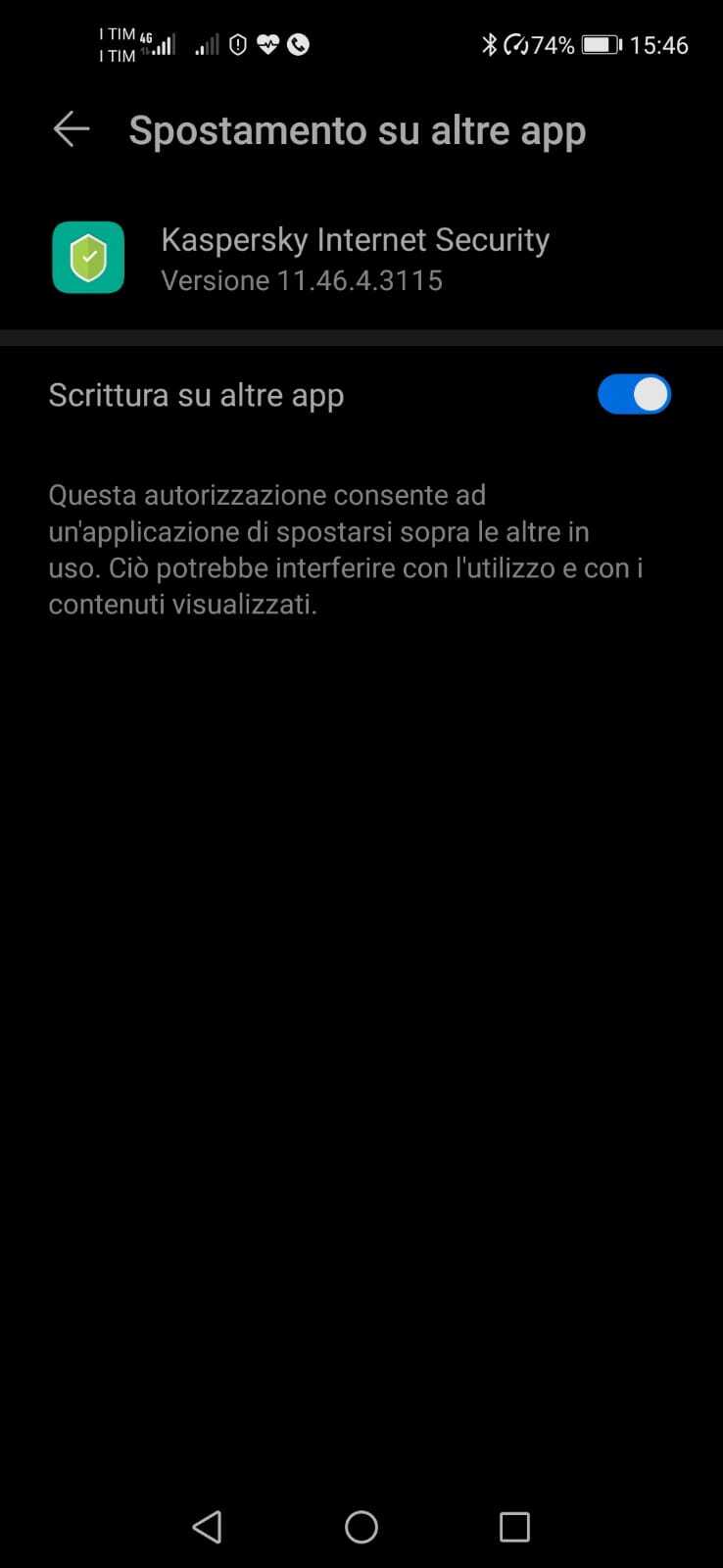 utilizzo KIS (versione 11.47.4.3188) nel mio telefono aggiornato alla versione 10 di Android (Huawei con Emui 10)