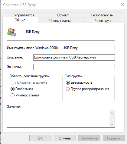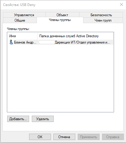 Потребовалась настройка блокировки доступа к USB по группе AD.