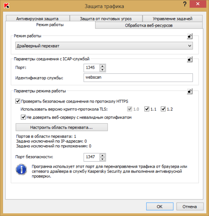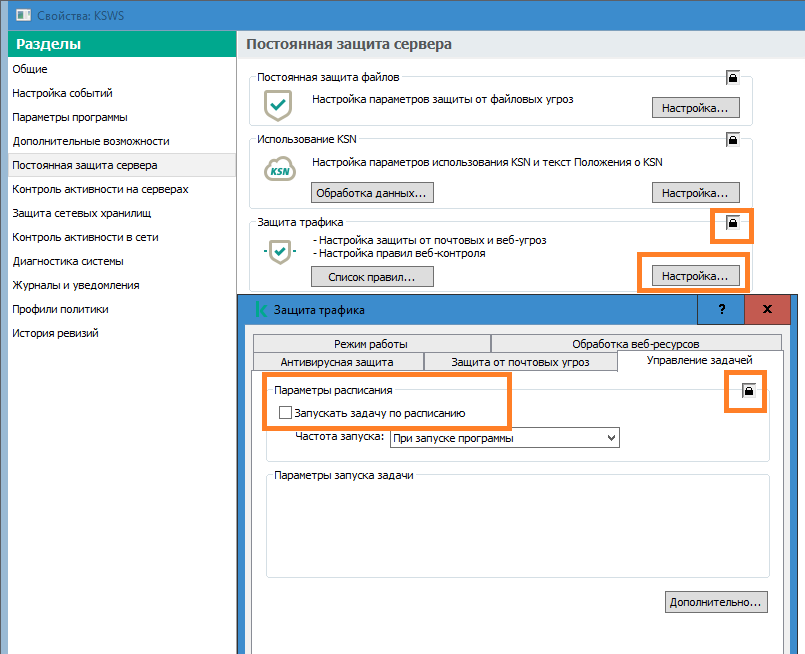 KSC центрацизованное отключение Защиты трафика KSWS
