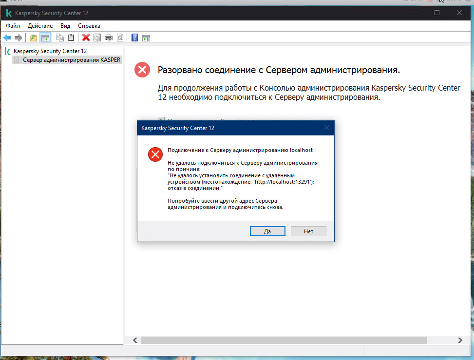 KSC 12 на виртуальной машине ESXI. (не удалось подключиться к серверу администрирования)