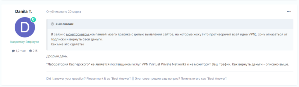 Итого мы ответ предоставили, в том числе предоставили информацию о том, что такое VPN и для чего он нужен. Как видно, что не заявляются обходы блокировок РКН. Мы не комментируем то, что кто не правильно понимает предназначение тех или иных сервисов.