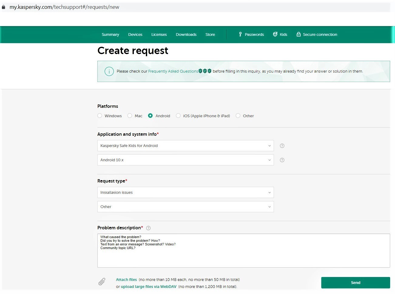 KSK loses connection/can't control kid's phone although the device is listed under my devices in My Kaspersky