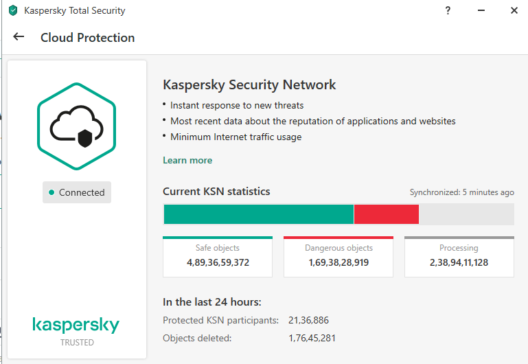Kts cloud protection "current statistics" detect too many dangerous objects