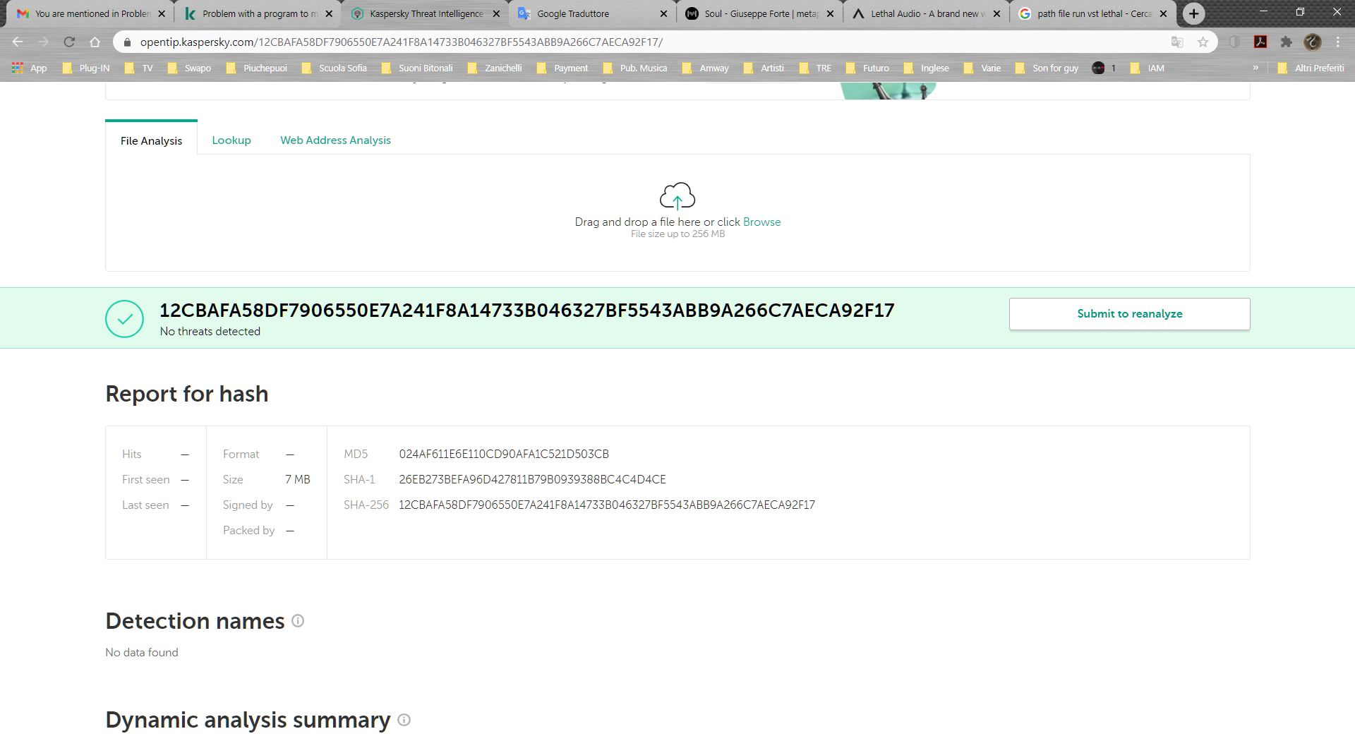 Lethal program, a virtual synthesizer, Kaspersky blocks it.