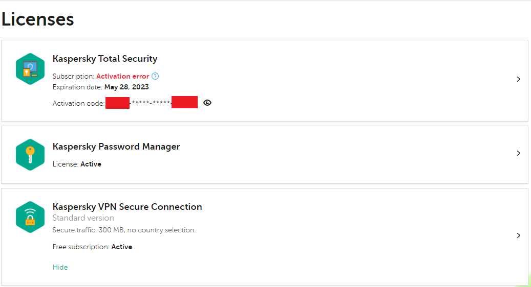Licenses list: "Subscription: Activation error"