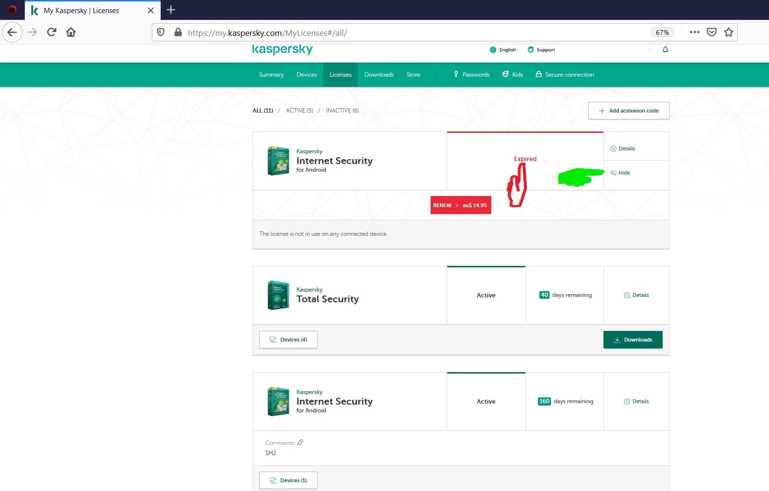 My Kaspersky Account: when these keys will expire, will disappeared from “my licenses” on my kaspersky completely or will they look like expired ? [Closed]